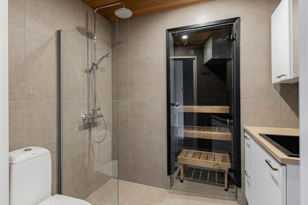 Asuntojen erityisinä mukavuuksina ovat oma sauna ja lasitettu terassi. Saunassa voit kuunnella musiikkia kaiuttimista. Takapiha avautuu etelään peltomaisemalla!